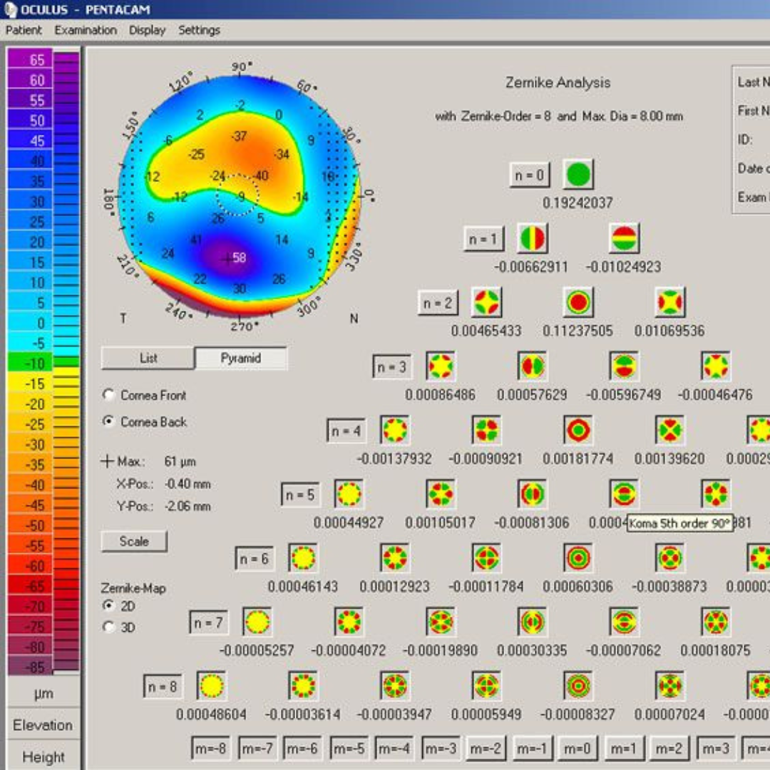 Esame delle aberrazioni ottiche dell’occhio, corneali e interne. Serve per una correzione visiva di altissima precisione, in particolare per lenti personalizzate.